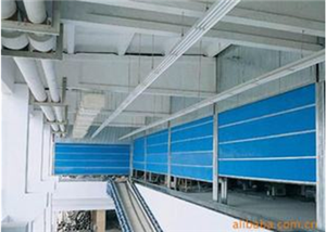 用不燃燒材料制成,從頂棚下垂不小于500 mm的固定或活動的擋煙設施?;顒訐鯚煷贡谙抵富馂臅r因感溫、感煙或其它控制設備的作 用,自動下垂的擋煙垂壁。 主要用于高層或超高層大型商場、寫字樓以及倉庫等場合,能有效阻擋煙霧在建筑頂棚下橫向流動,以利提高在防煙分區內的排煙效果,對保障人民生命財產安全起到積極作用。